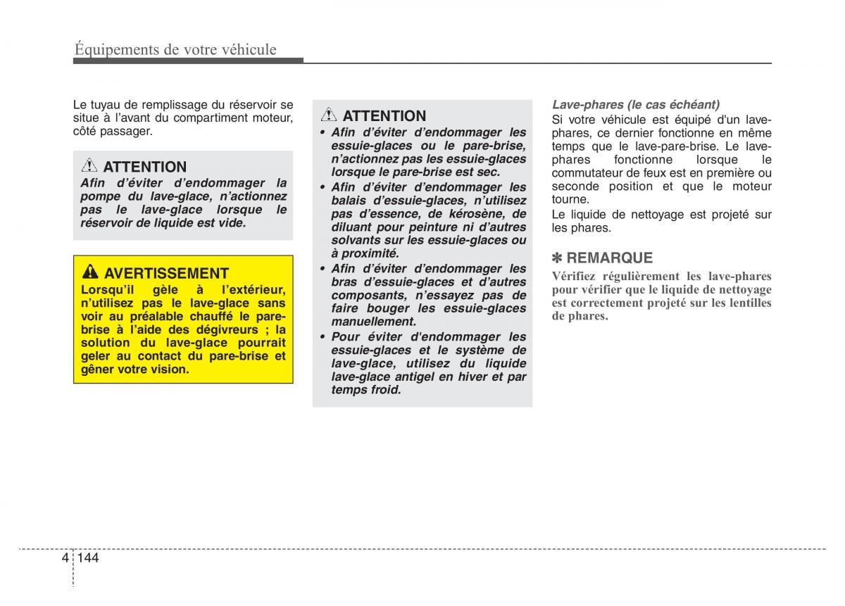 pas le lave-glace lorsque le