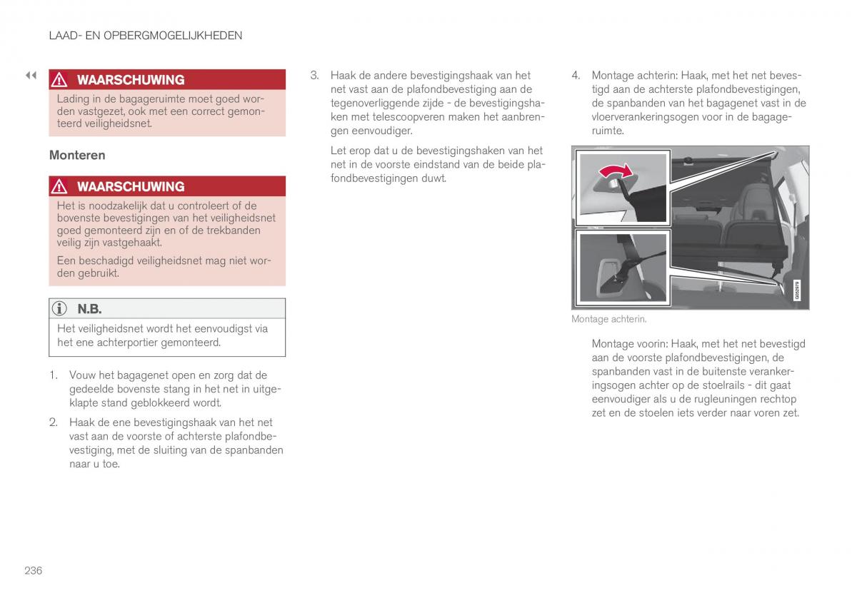 Lading in de bagageruimte moet goed wor-net vast aan de plafondbevestiging aan detigd aan de achterste plafondbevestigingen,