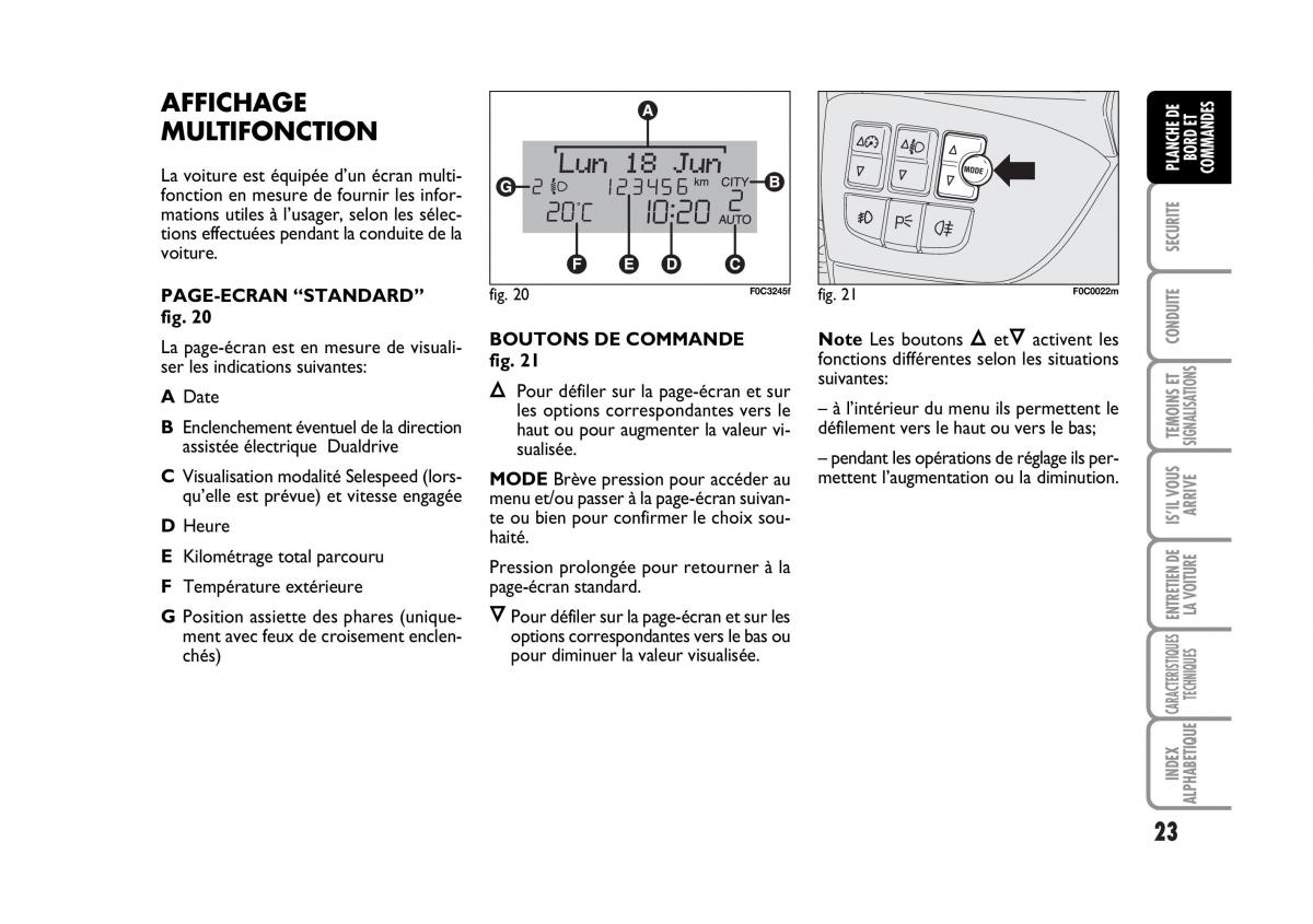 PAGE-ECRAN “STANDARD” fig. 20 F0C3245f fig. 21 F0C0022m