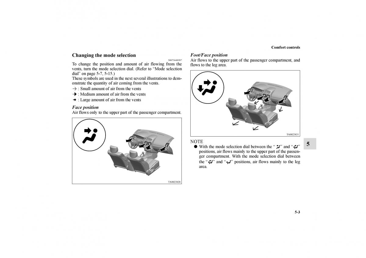 vents, turn the mode selection dial. (Refer to “Mode selection flows to the leg area.