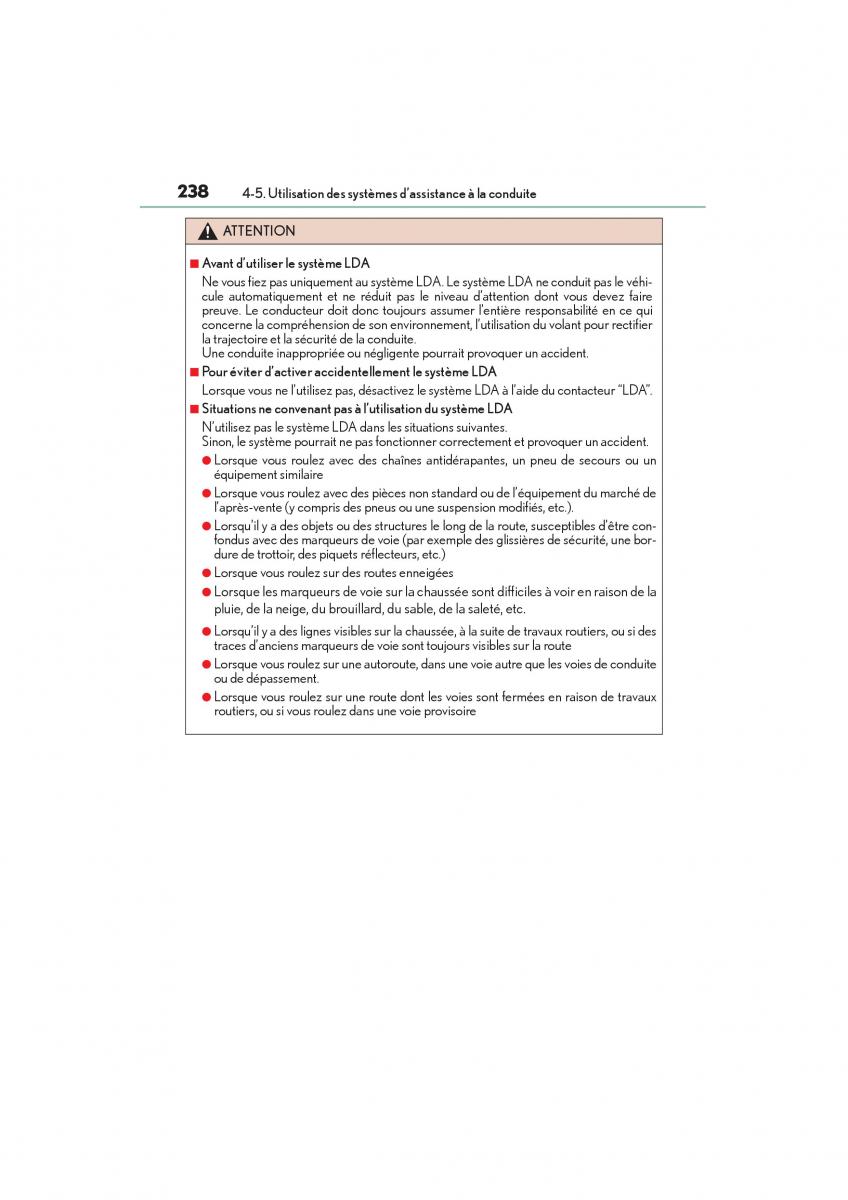 238 4-5. Utilisation des systèmes d’assistance à la conduite