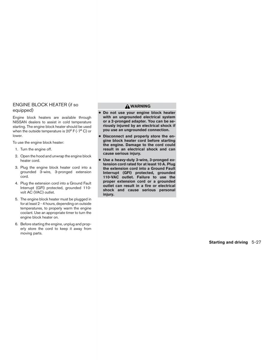 NISSAN dealers to assist in cold temperatureor a 2-pronged adapter. You can be se-