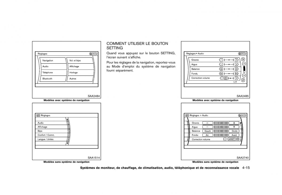 Systemes de moniteur, de chauffage, de climatisation, audio, telephonique et de reconnaissance vocale4-15