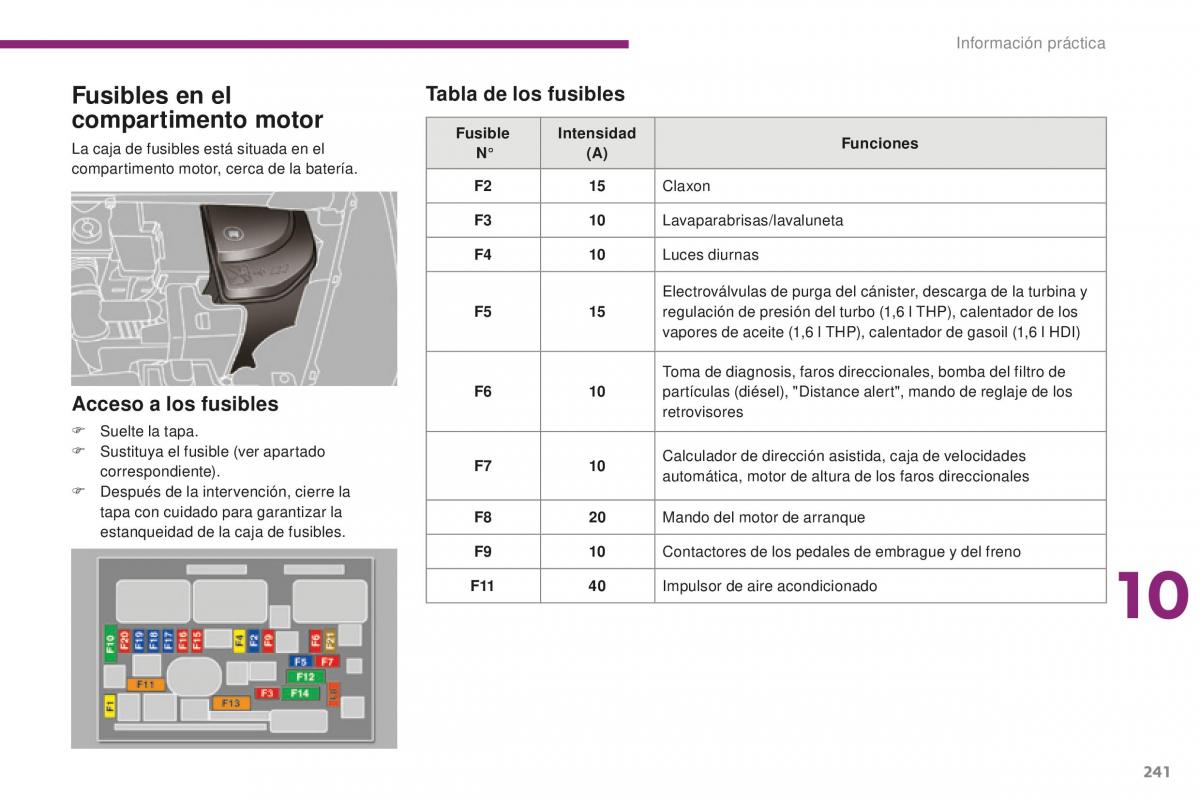 Acceso a los fusibles F6 10 partículas (diésel), "Distance alert", mando de reglaje de los