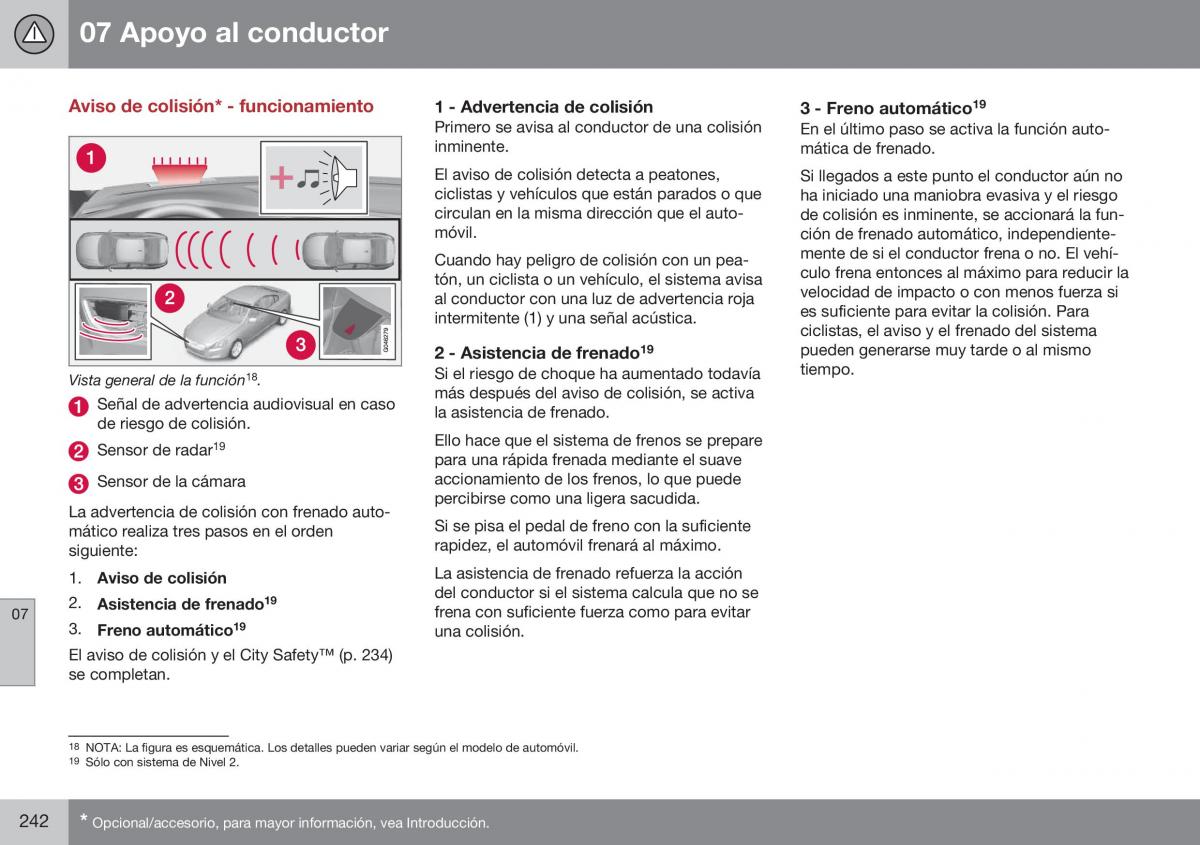 circulan en la misma dirección que el auto- de colisión es inminente, se accionará la fun-