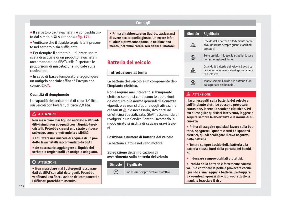 un antigelo speciale affinché l'acqua nonLa batteria del veicolo è un componente del-Tenere sempre l'acido e le batterie fuori