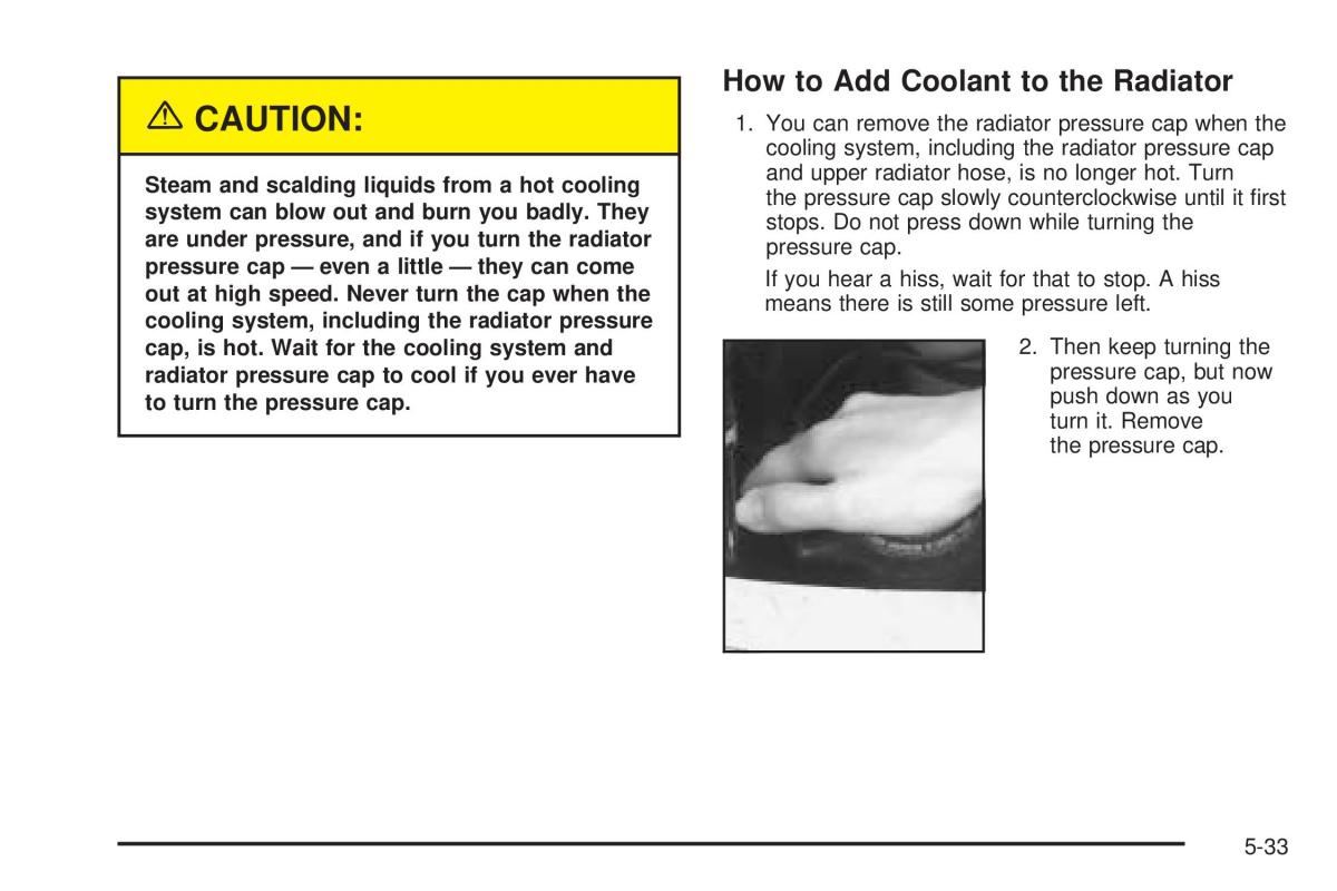{CAUTION: 1. You can remove the radiator pressure cap when the