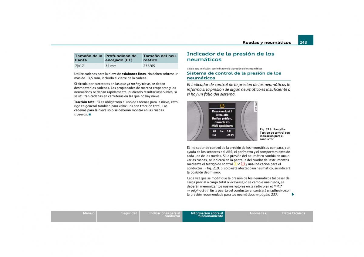 conductor ⇒fig.219. Si sólo está afectado un neumático, se indicará