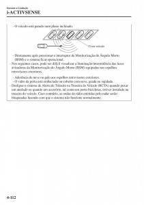 Monitorização do Ângulo Morto (BSM) pisca e o som de aviso é ativado em simultâneo.