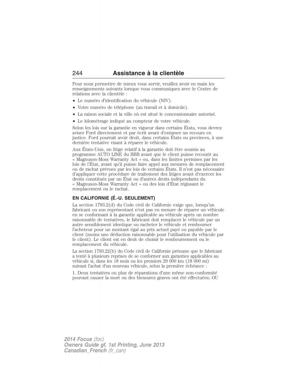 aviser Ford directement et par écrit avant d’entamer un recours en