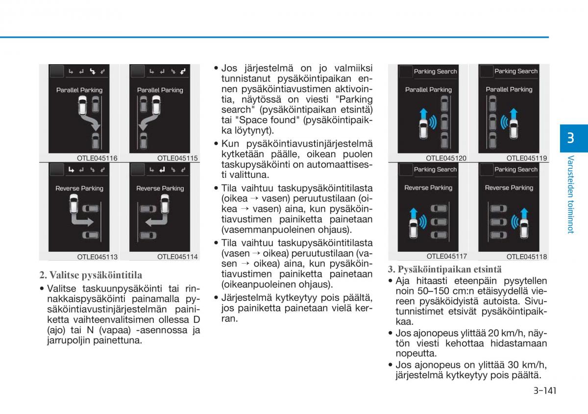 2. Valitse pysäköintitila tiavustimen painiketta painetaan 3. Pysäköintipaikan etsintä