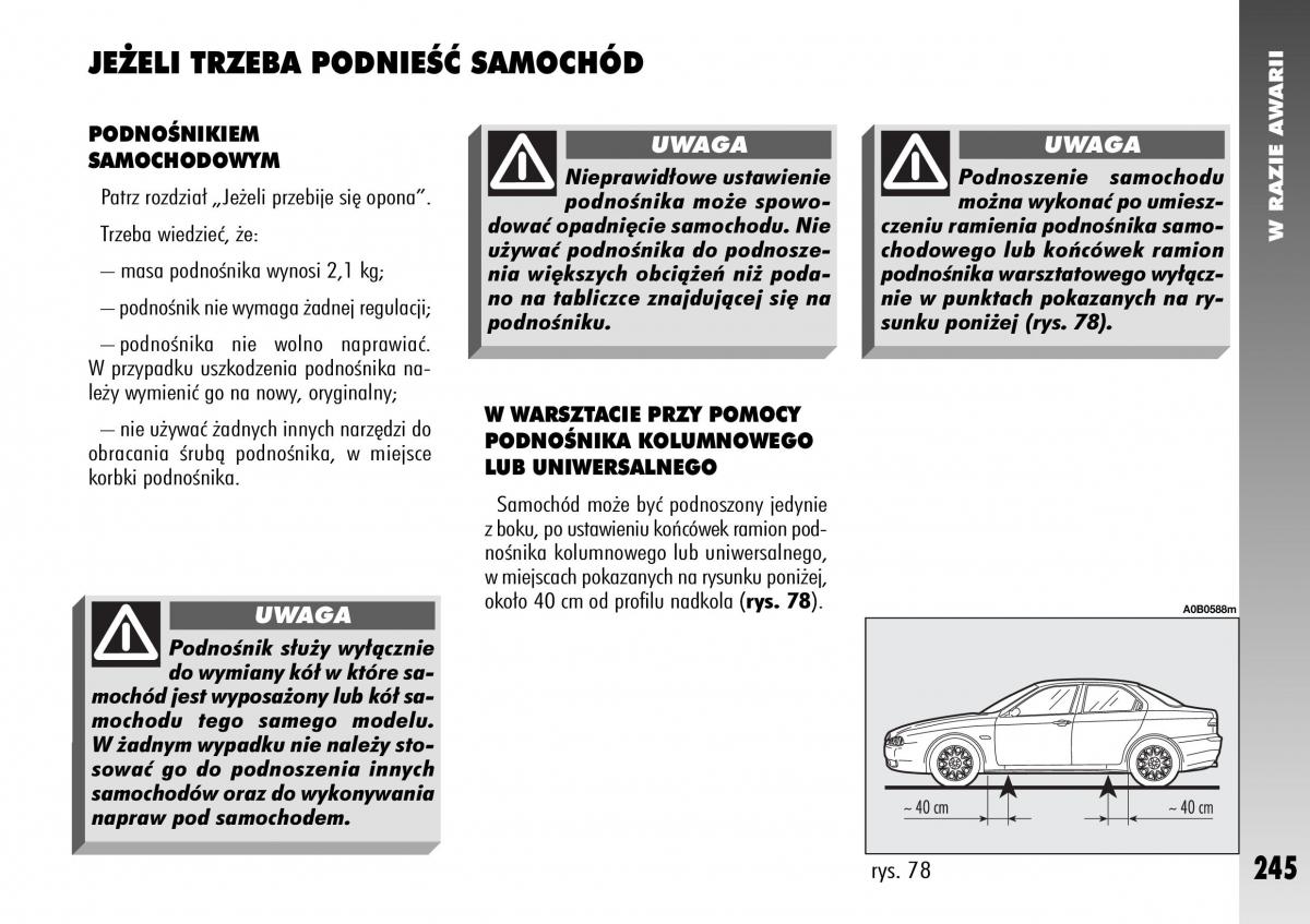 owners manual Alfa Romeo 156 - year of production: 1997, 1998, 1999, 2000, 2001, 2002, 2003, 2004, 2005, 2006 - Alfa Romeo 156 instrukcja obslugi PL