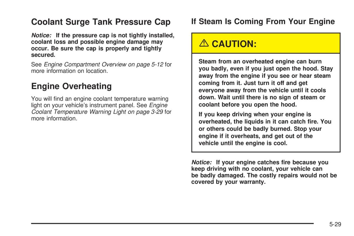 See Engine Compartment Overview on page 5-12 forSteam from an overheated engine can burn