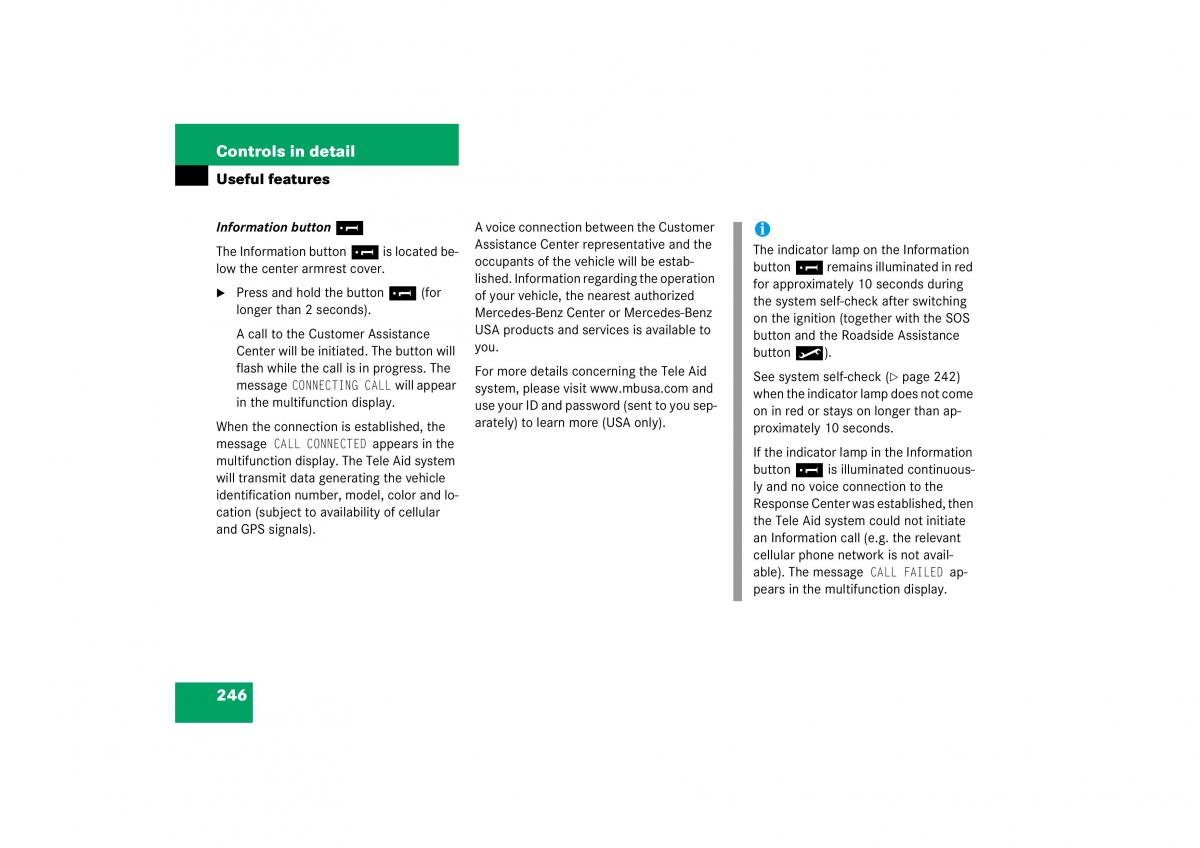 CONNECTING CALL will appear system, please visit www.mbusa.com and when the indicator lamp does not come