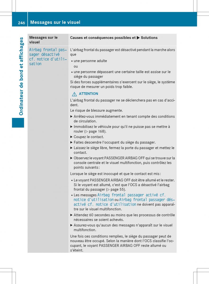 hagesAirbag frontal pasњ L'airbagfrontaldupassagerestdésactivépendantlamarchealors