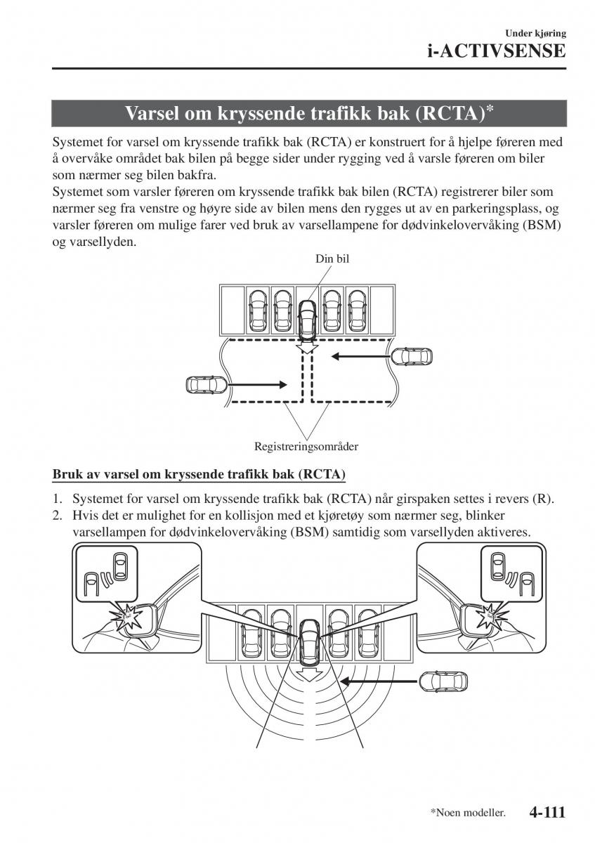 Systemet for varsel om kryssende trafikk bak (RCTA) er konstruert for å hjelpe føreren med