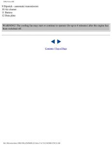 WARNING! The cooling fan may start or continue to operate (for up to 6 minutes) after the engine has