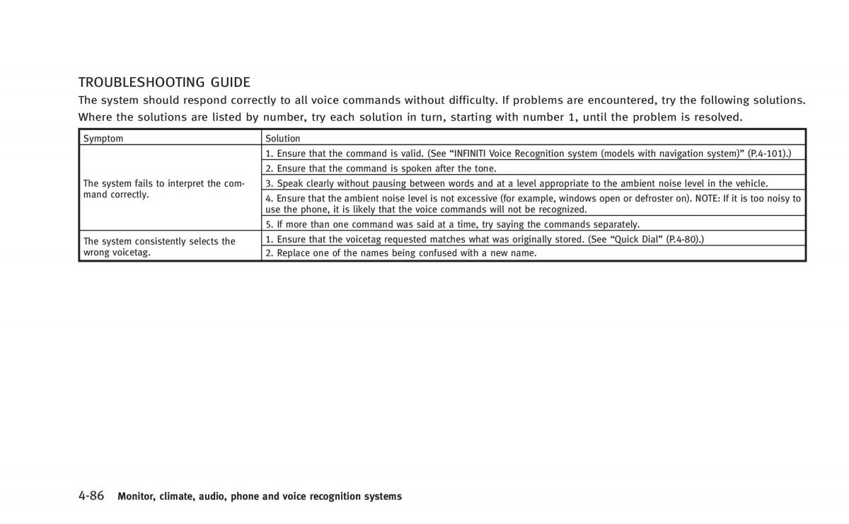 1. Ensure that the command is valid. (See “INFINITI Voice Recognition system (models with navigation system)” (P.4-101).)