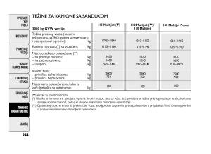 TEHNIČKE(**) Opterećenja koja ne smete da prekoračite. Vozač je odgovoran za pravilnu preraspodelu robe u prtljažniku i/ili na tovarnoj površini