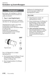 P-position (automatgear). Tågeforlygterne tændes ved at dreje
