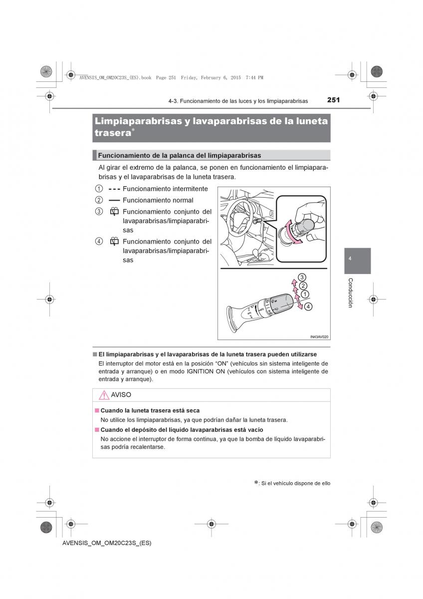owners manual Toyota Avensis - year of production: 2015 - Toyota Avensis IV 4 manual del propietario ES