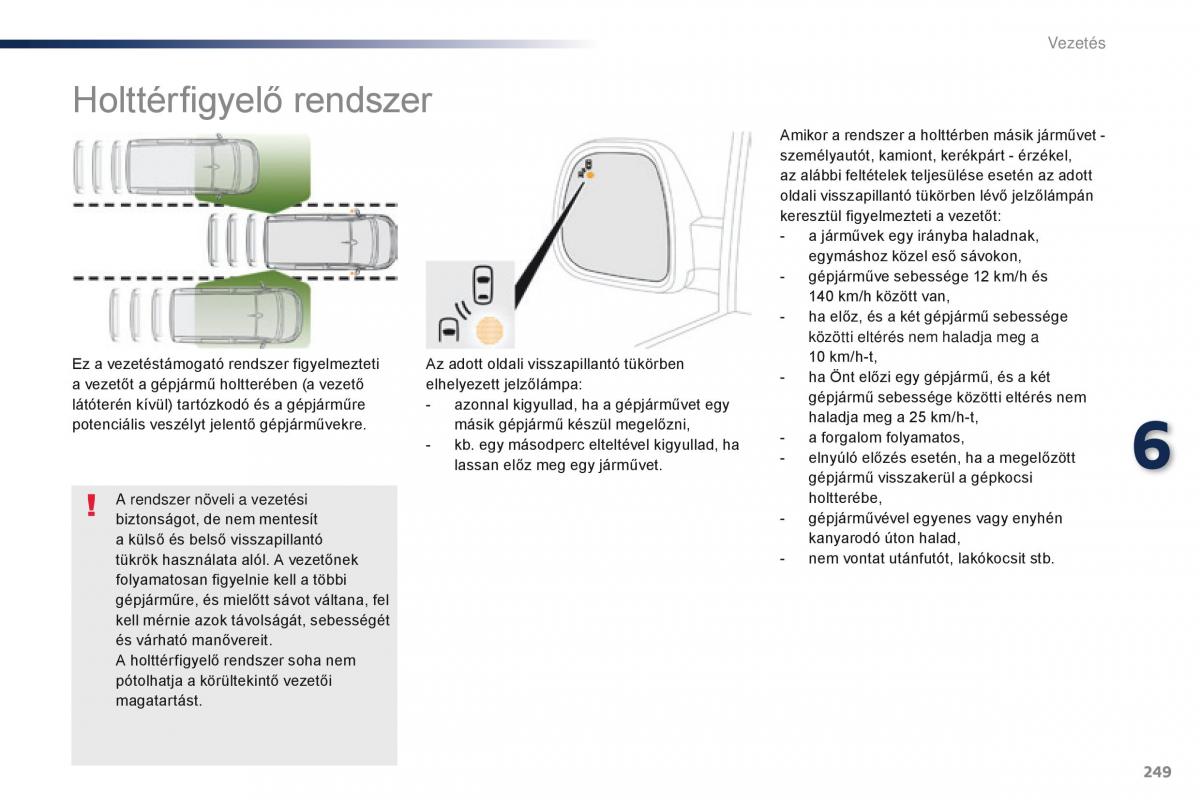 a vezetőt a gépjármű holtterében (a vezető elhelyezett jelzőlámpa:- ha Önt előzi egy gépjármű, és a két