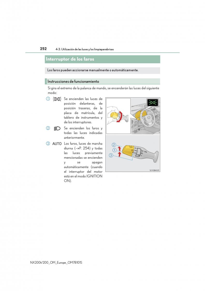 252 4-3. Utilización de las luces y los limpiaparabrisas