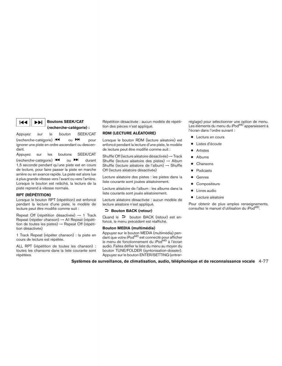 lecture peut être modifié comme suit : BoutonBACK(retour) consultez le manuel d’utilisation du iPod