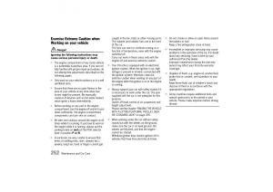 f Be alert and cautious around the engine at all f When working under the car without safety