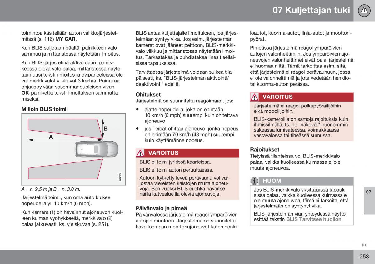 toimintoa käsitellään auton valikkojärjestel-BLIS antaa kuljettajalle ilmoituksen, jos järjes-löautot, kuorma-autot, linja-autot ja moottori-