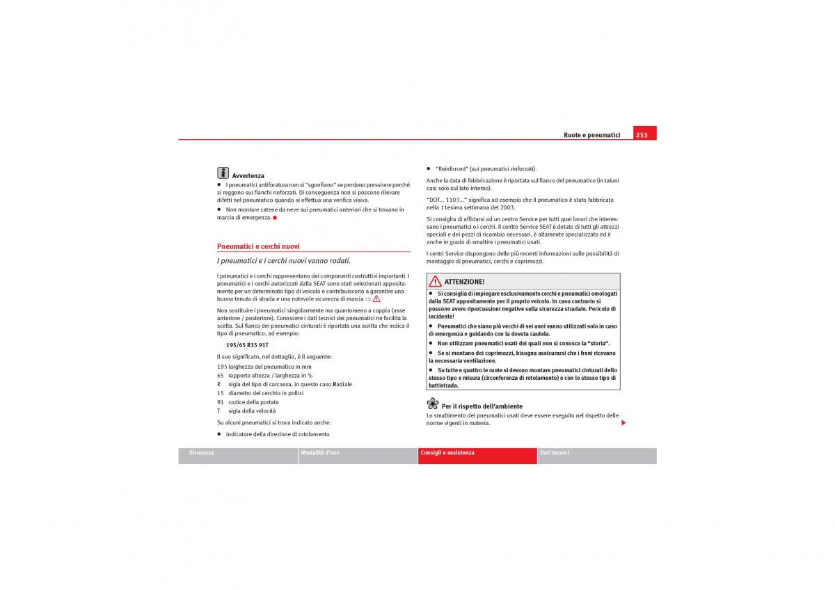 buona tenuta di strada e una notevole sicurezza di marcia ⇒.dalla SEAT appositamente per il proprio veicolo. In caso contrario si