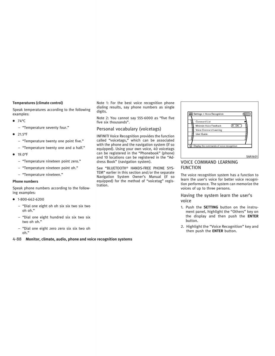 – “Temperature nineteen point zero.”dress Book” (navigation system).VOICE COMMAND LEARNING