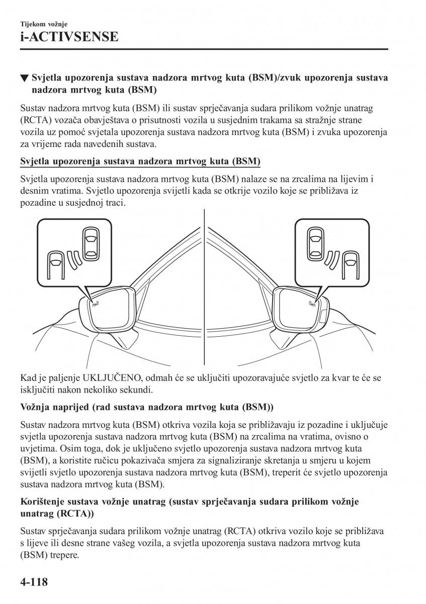 Sustav nadzora mrtvog kuta (BSM) otkriva vozila koja se približavaju iz pozadine i uključuje