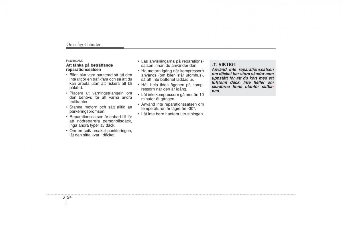 reparationssatsen • Ha motorn igång när kompressorn Använd inte reparationssatsen