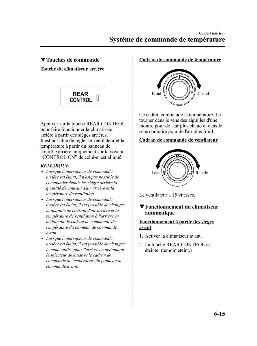 Appuyer sur la touche REAR CONTROL tourner dans le sens des aiguilles d'une