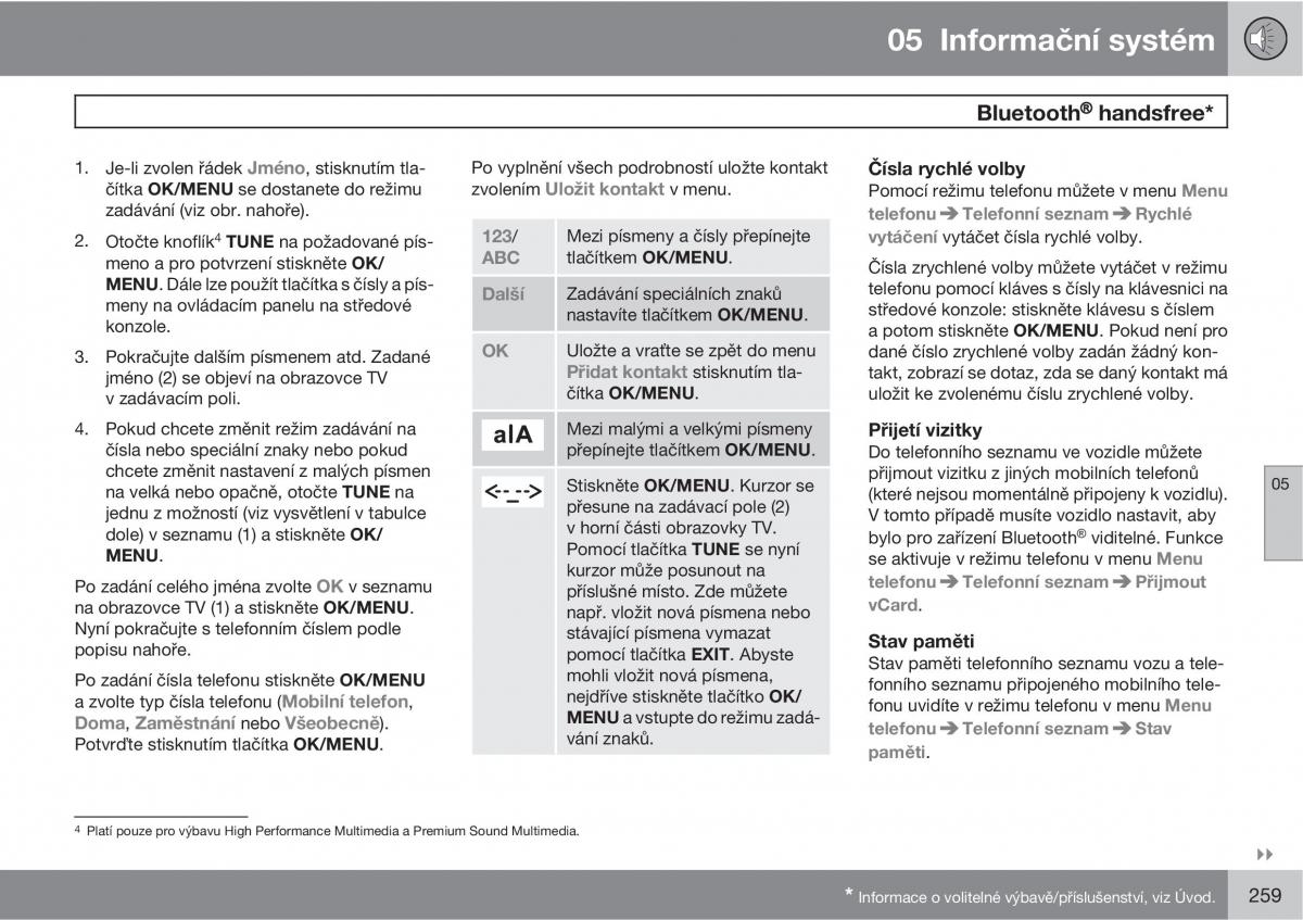 čísla nebo speciální znaky nebo pokud přepínejte tlačítkem OK/MENU. Do telefonního seznamu ve vozidle můžete