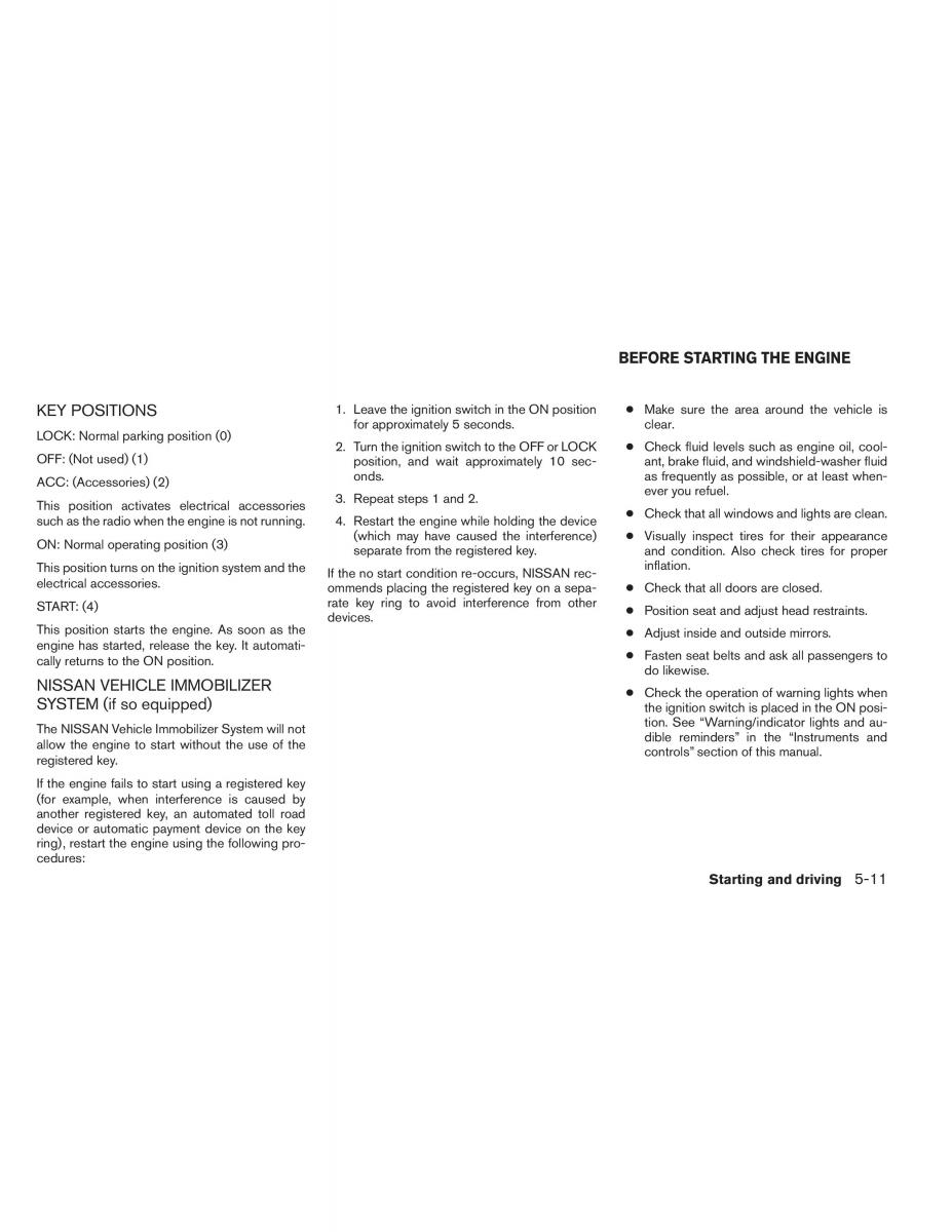 engine has started, release the key. It automati- ● Fasten seat belts and ask all passengers to