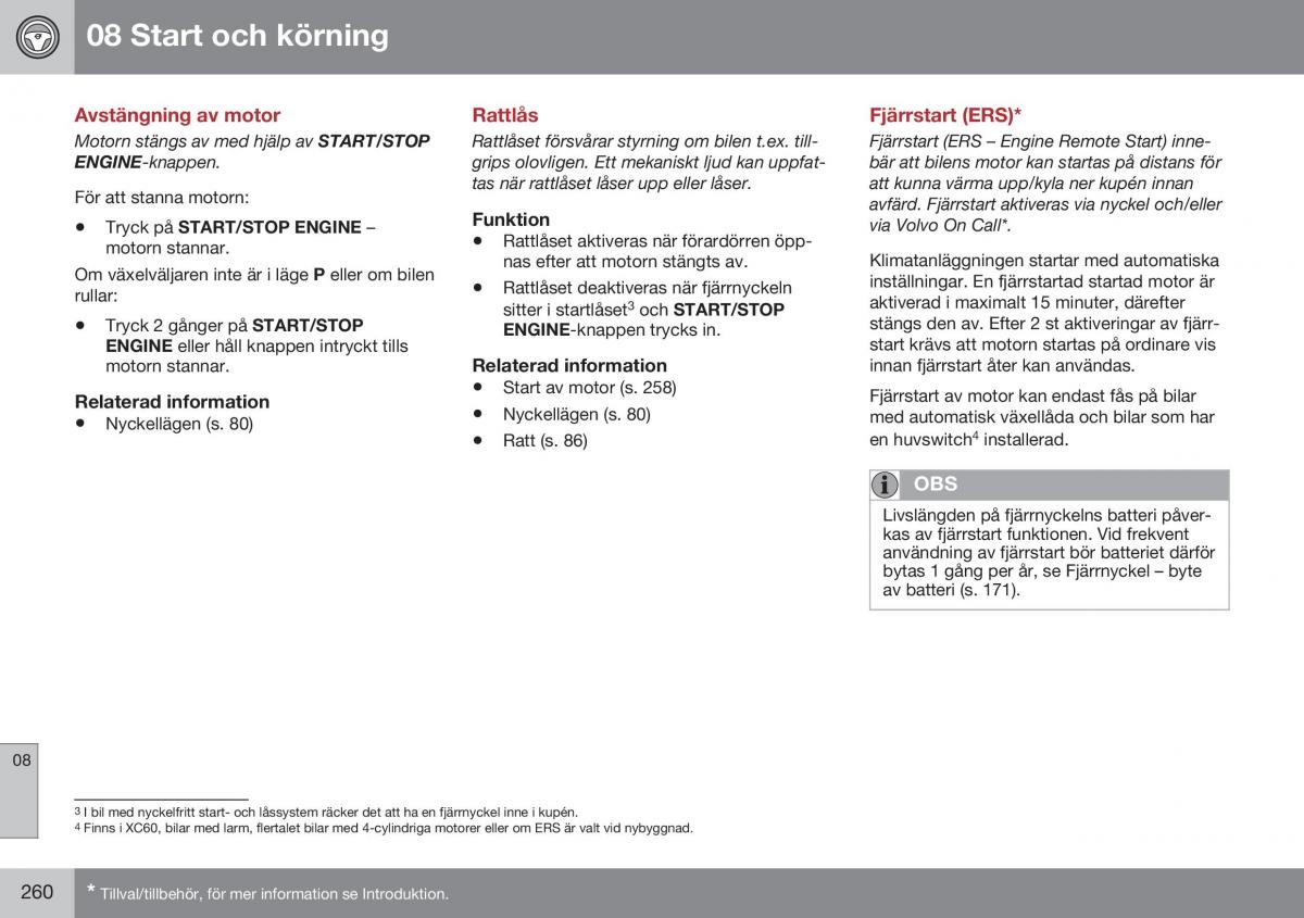 Motorn stängs av med hjälp av START/STOP Rattlåset försvårar styrning om bilen t.ex. till- Fjärrstart (ERS – Engine Remote Start) inne-