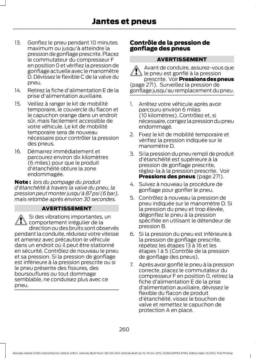 owners manual Ford Mondeo Hybrid - year of production: 2014 - Ford Mondeo hybrid MKV MK5 manuel du proprietaire FR