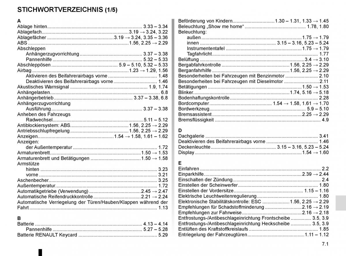 Automatische Reifendruckkontrolle .2.21 → 2.24Elektrische Leuchtweitenregulierung . 1.80