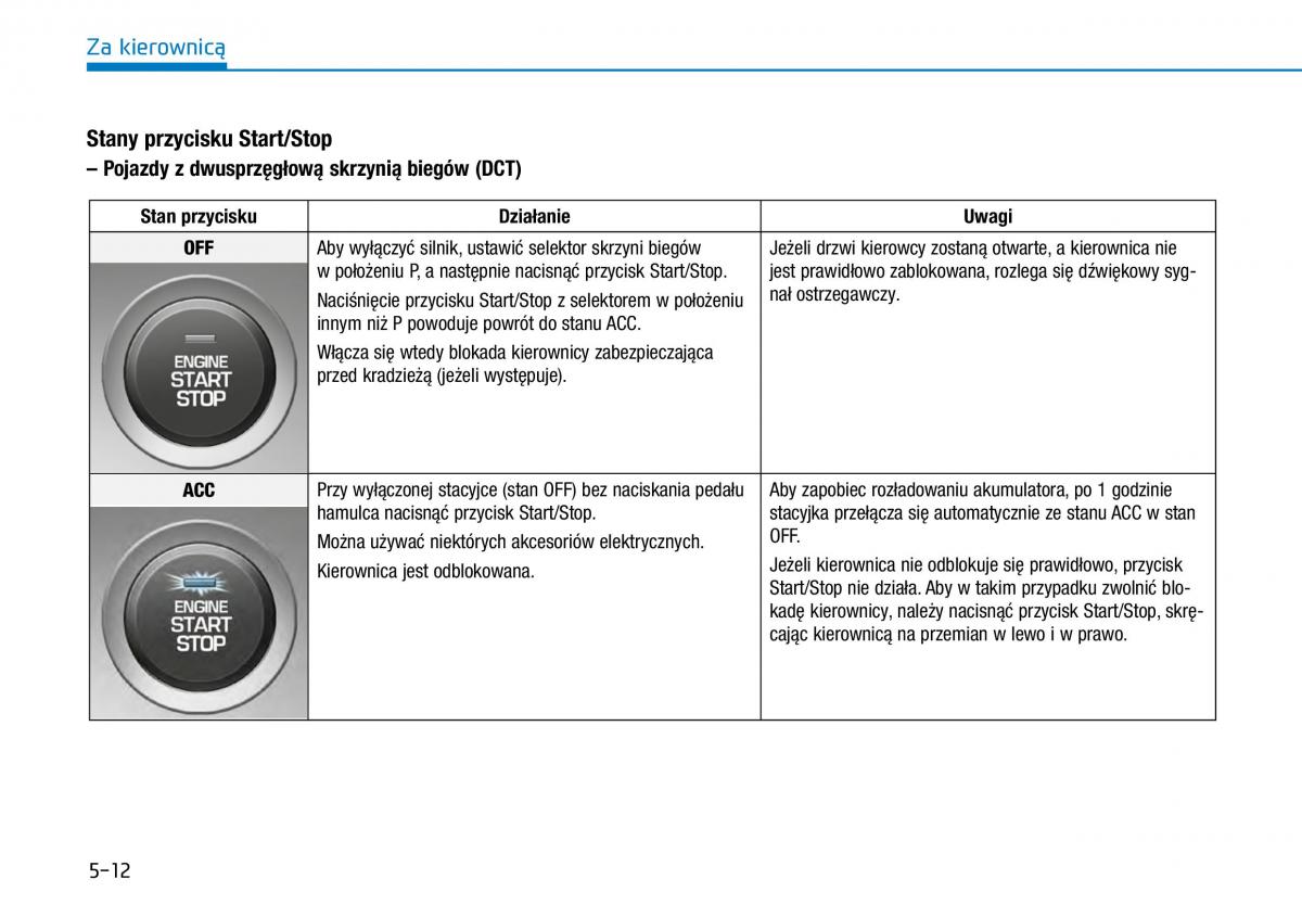 hamulca nacisnąć przycisk Start/Stop.stacyjka przełącza się automatycznie ze stanu ACC w stan