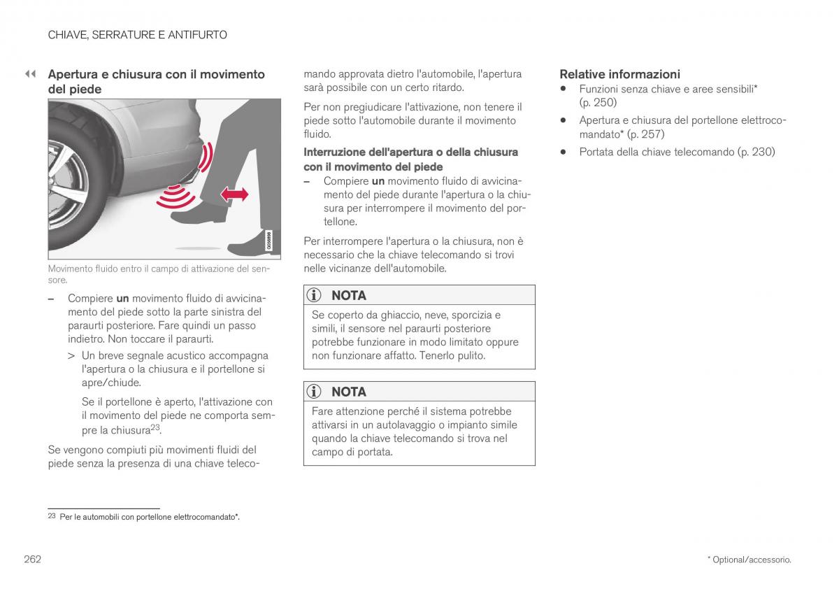 del piede sarà possibile con un certo ritardo. Funzioni senza chiave e aree sensibili*