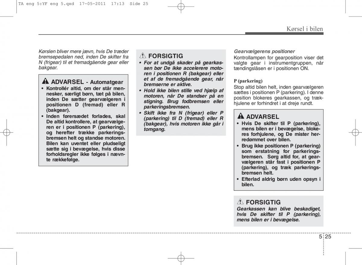 sætte sig i bevægelse, hvis disse • Brug ikke positionen P (parkering)