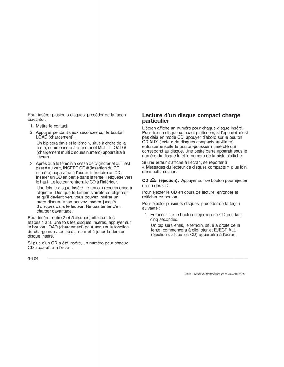 owners manual Hummer H2 - year of production: 2002, 2003, 2004, 2005, 2006, 2007, 2008, 2009, 2010 - Hummer H2 manuel du proprietaire FR