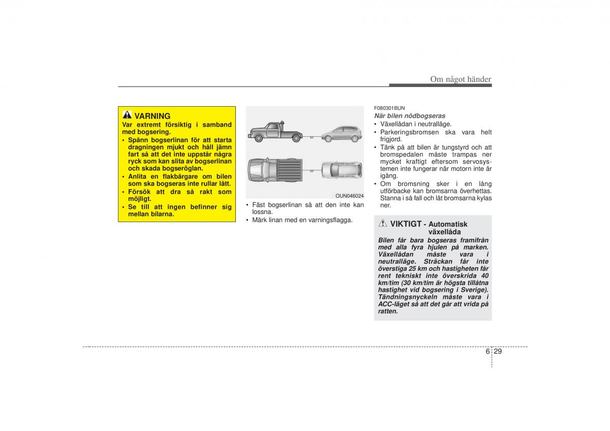 VARNING När bilen nödbogseras