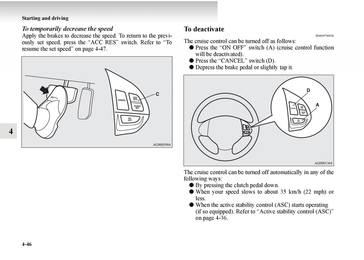 resume the set speed” on page 4-47. ●Press the “ON OFF” switch (A) (cruise control function