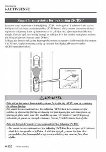 • Det smarte bremsestøttesystemet for bykjøring (SCBS) vil ikke virke hvis føreren med
