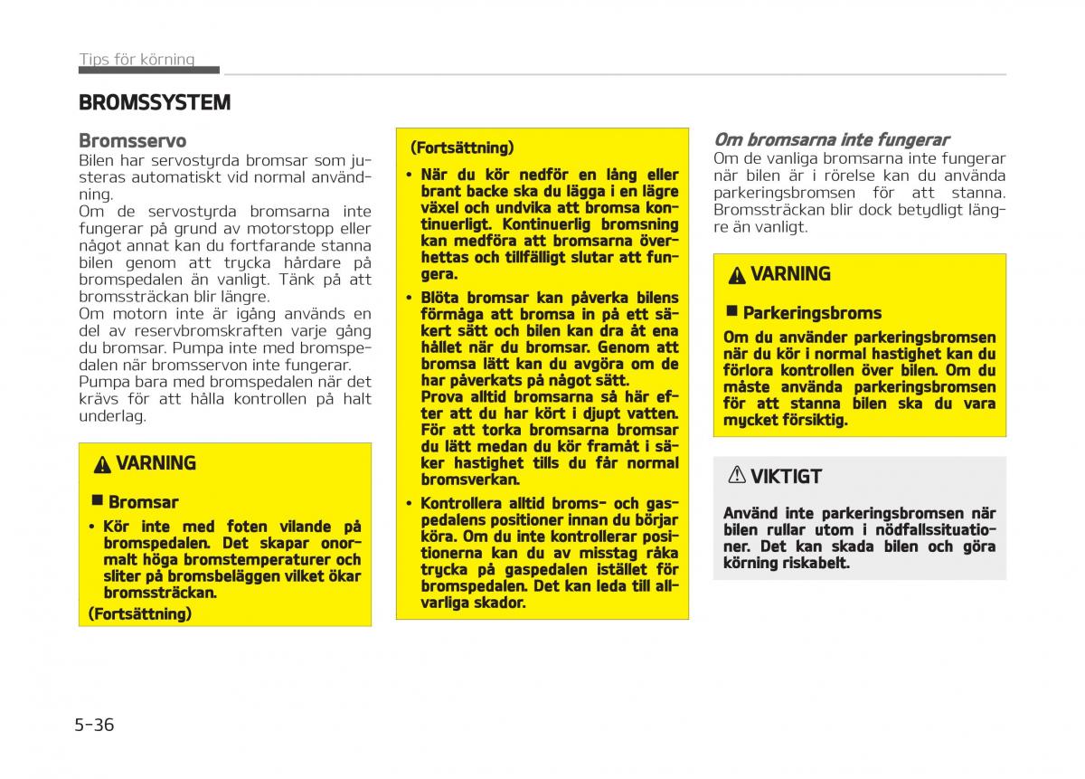 Bromsar • Kontrollera alltid bromsÄ och gas‐