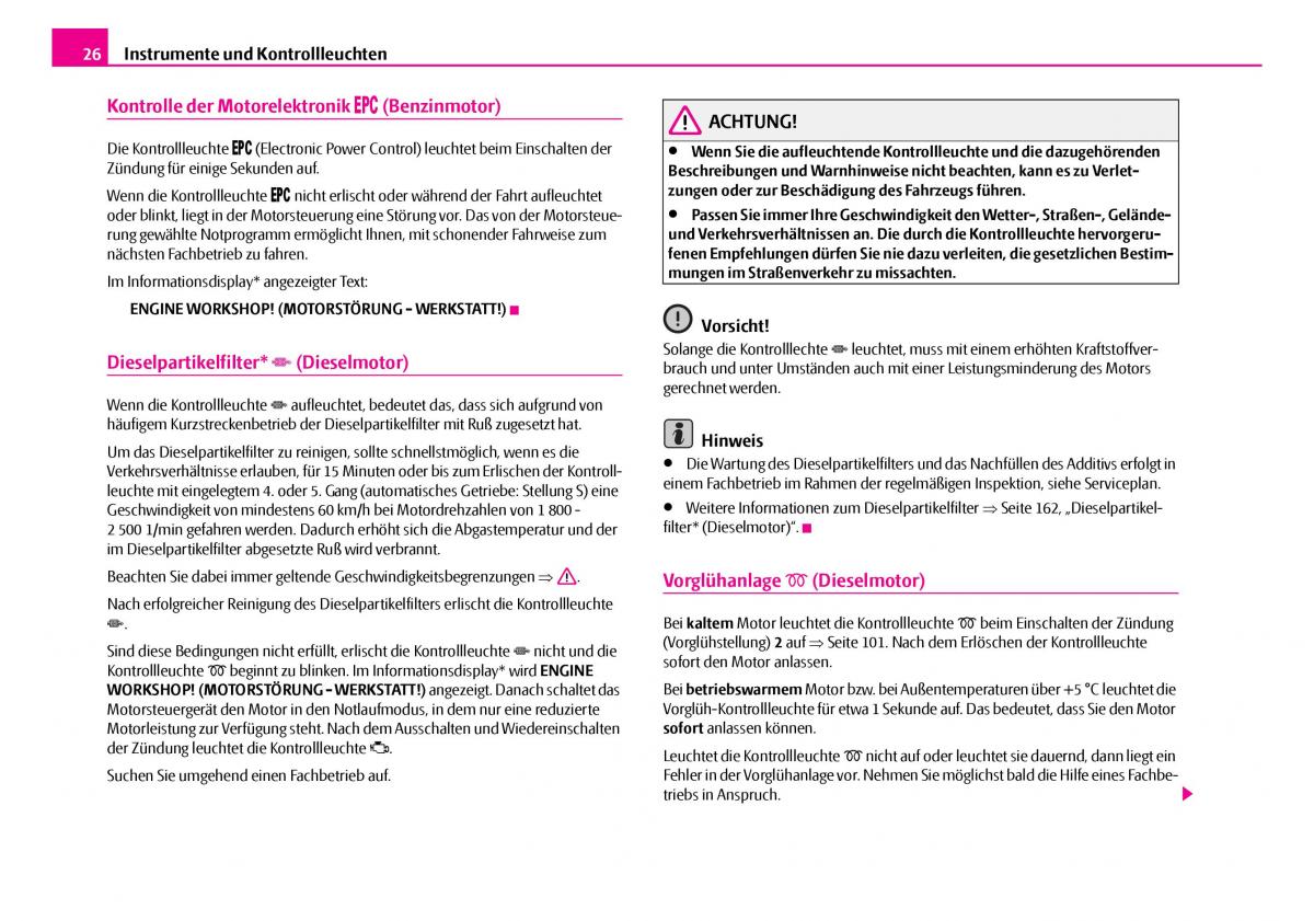 Dieselpartikelfilter* (Dieselmotor) Solange die Kontrolllechte leuchtet, muss mit einem erhöhten Kraftstoffver-