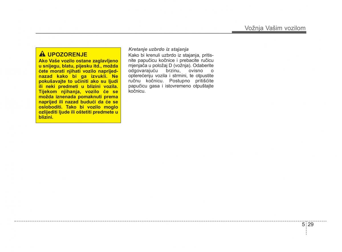 UPOZORENJE Kretanje uzbrdo iz stajanja